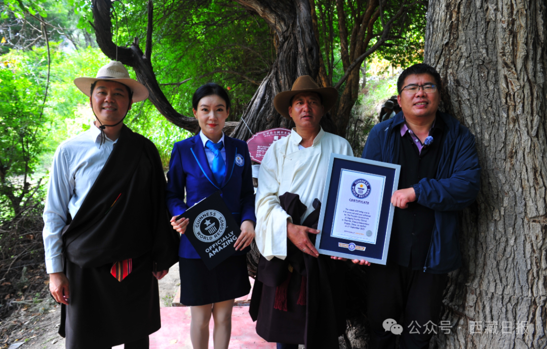 图为中国农业科学院果树研究所副所长、国家葡萄产业技术体系首席科学家王海波(右)与左贡县主要领导接受吉尼斯世界纪录认证证书。记者 温凯 平措郎加 摄