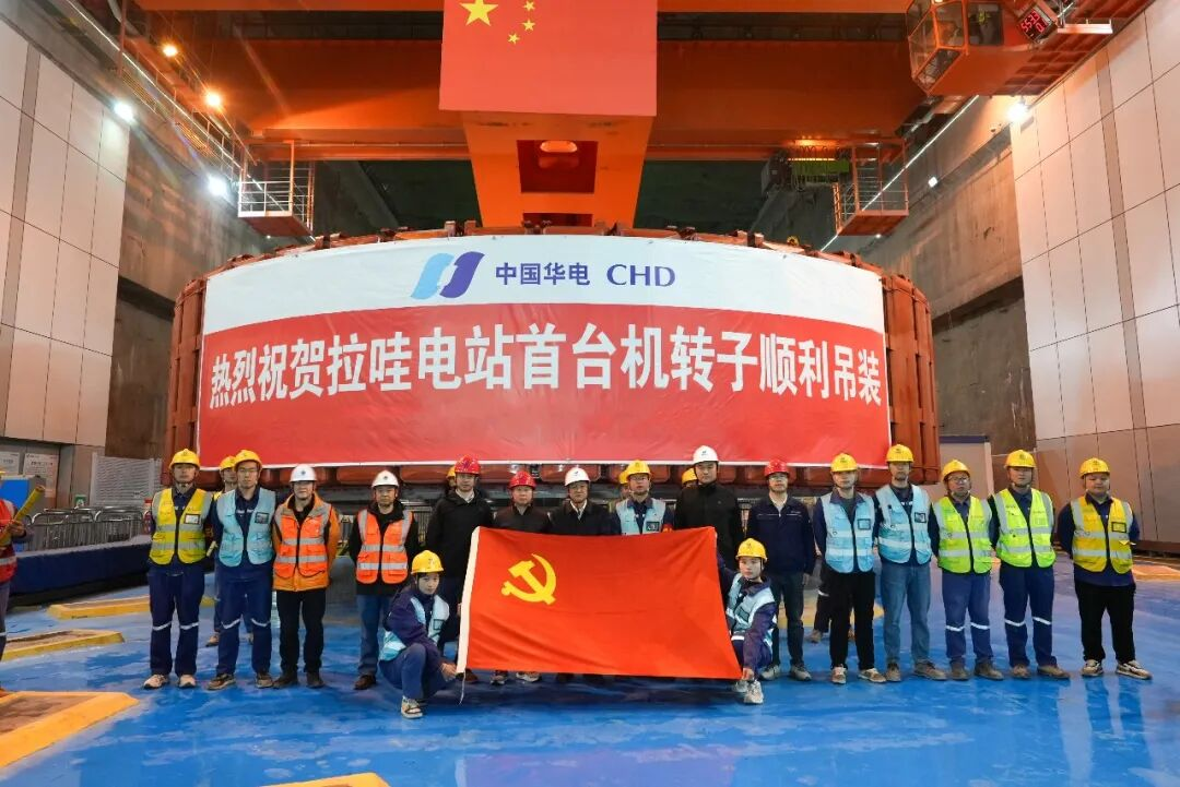 4 月 11 日,地处川藏交界金沙江干流的拉哇水电站,首台(4 号)机转子顺利完成吊装,标志着机组安装进入总装冲刺阶段,为电站按期投产发电筑牢坚实根基。