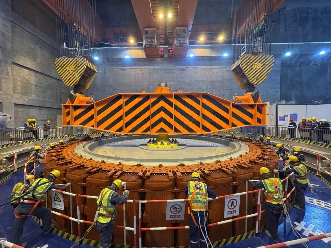今天,金沙江干流拉哇水电站首台机转子成功吊装