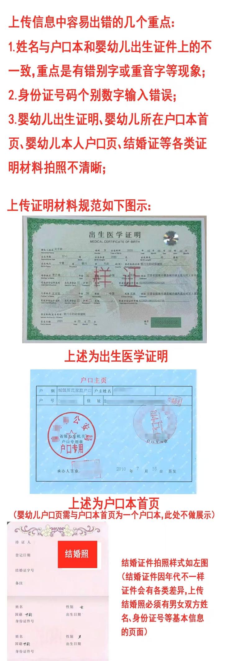 ①婴幼儿信息:姓名、证件号、出生日期、性别、户籍地址、孩次及哥哥姐姐基本信息(若非一孩);