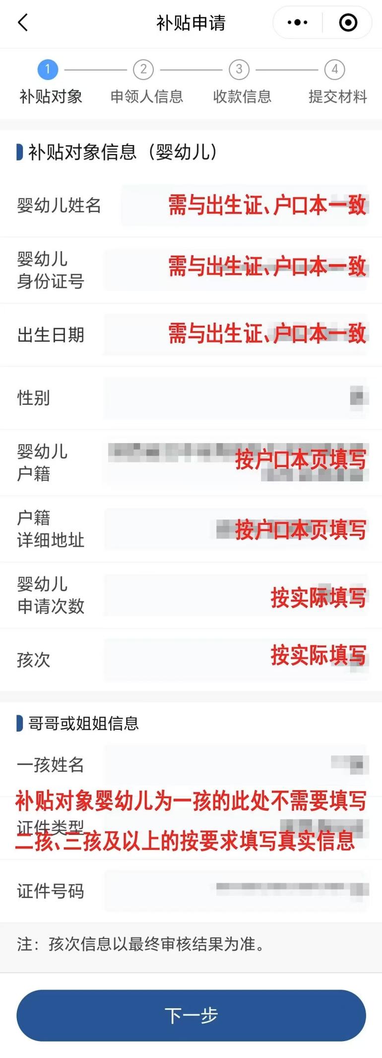 请务必在规定时间内申请:所有2025年1月1日前出生的小孩都必须在2025年之内申报一次;提交材料须真实清晰,个人信息、银行账号等务必准确;